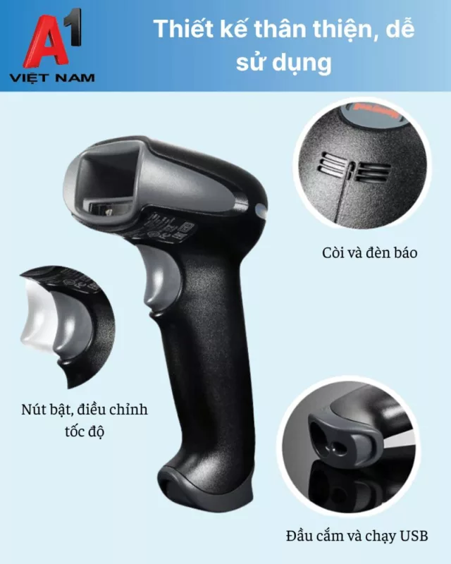 - Đầu quét (Scanner): Đóng vai trò phát ra tia laser để quét mã vạch và thu thập thông tin phản xạ từ mã vạch