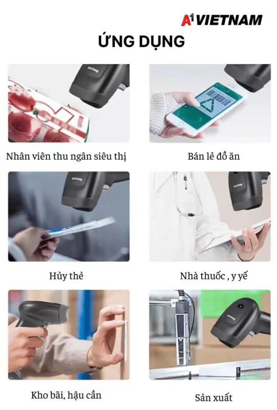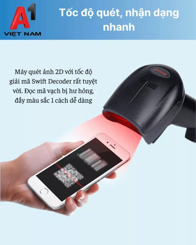 - Máy có thể quét đa dạng được các loại mã vạch như 1D, 2D, mã vạch trên màn hình điện thoại, mã vạch bị hư hỏng…