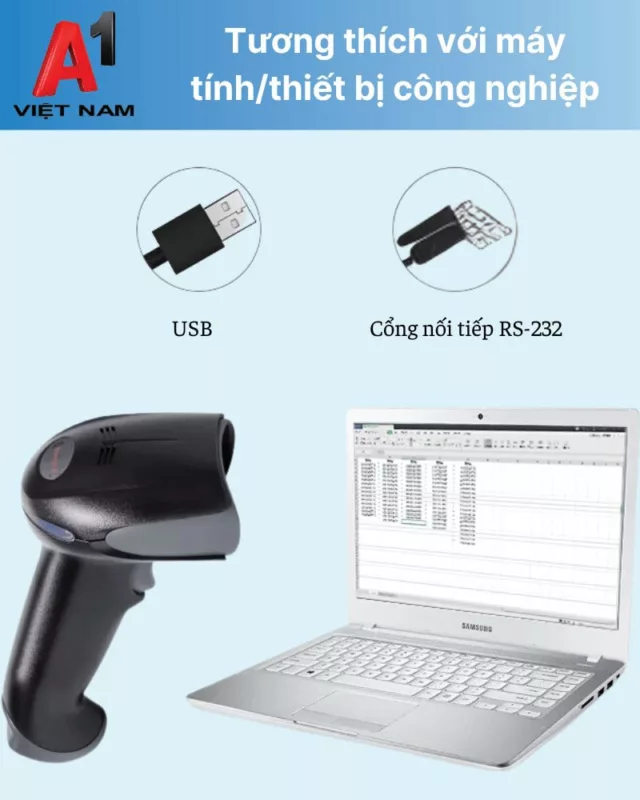 Bước 1: Kết nối máy quét mã vách với máy tính