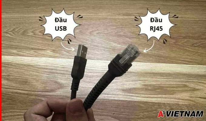 - Sau đó cắm đầu RJ45 trực tiếp vào máy quét, cắm đầu USB vào máy chú. Khi máy phát ra âm báo đồng thời có ánh sáng xanh ở trên dải đèn led thì đã kết nối thành công.