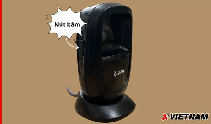 - Để sử dụng chế độ quét cầm tay, bạn cần ấn vào nút bên trái của máy. Khi này máy sẽ phát ra đèn, di chuyển đèn nhắm vào vị trí mã vạch và ấn nút để quét.
