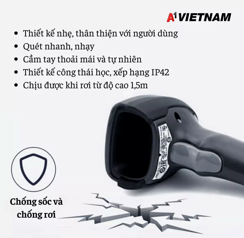 - Khả năng quét mã vạch trong điều kiện ánh sáng yếu, tự động tìm kiếm và quét mã vạch.