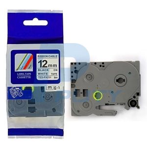 Nhãn in TZ2-FX231 chữ đen nền trắng 12mm