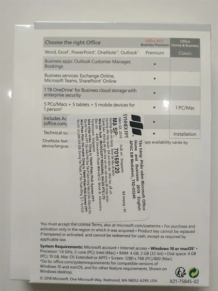 Office Home and Business 2019 English APAC EM Medialess T5D-03249